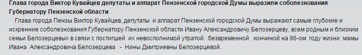 Сегодня в семье Губернатора Пензенской области случилось горе. На 86 году жизни умерла мама Ивана Белозерцева.