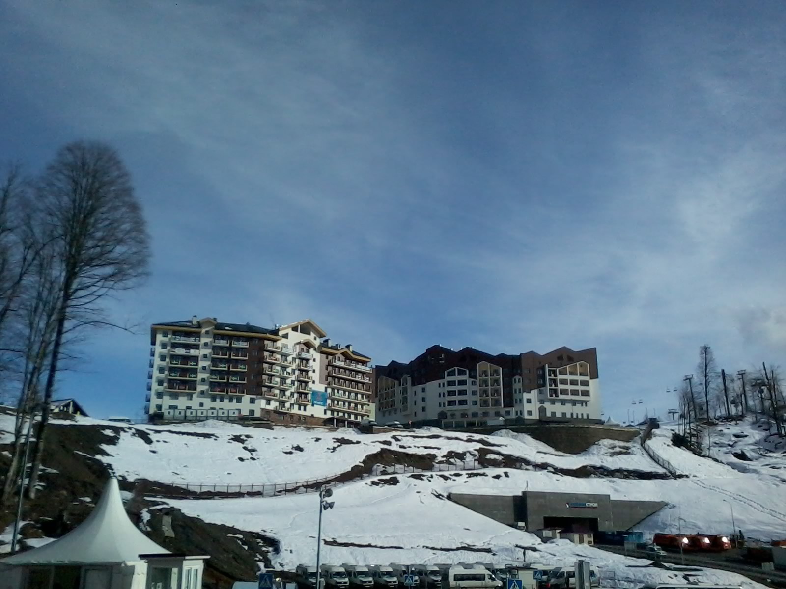 Вчера Яна Гугина работала в горной Олимпийской деревне. Здесь на каждом балконе висит флаг того государства, которое представляют живущие здесь спортсмены.