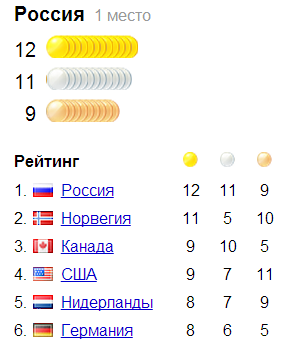 После победы наших лыжников Россия еще больше укрепилась на первом месте в общемедальном зачете