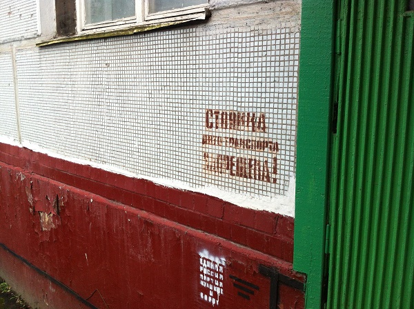 Кроме того, "личная" парковка размещена на участке, предназначенном для специальной техники, приезжающей в случае черезвычайных происшествий, и стоянка, естественно, запрещена, о чем на стене сделана специальная надпись. Но даже и она не останавливает любителей комфорта.