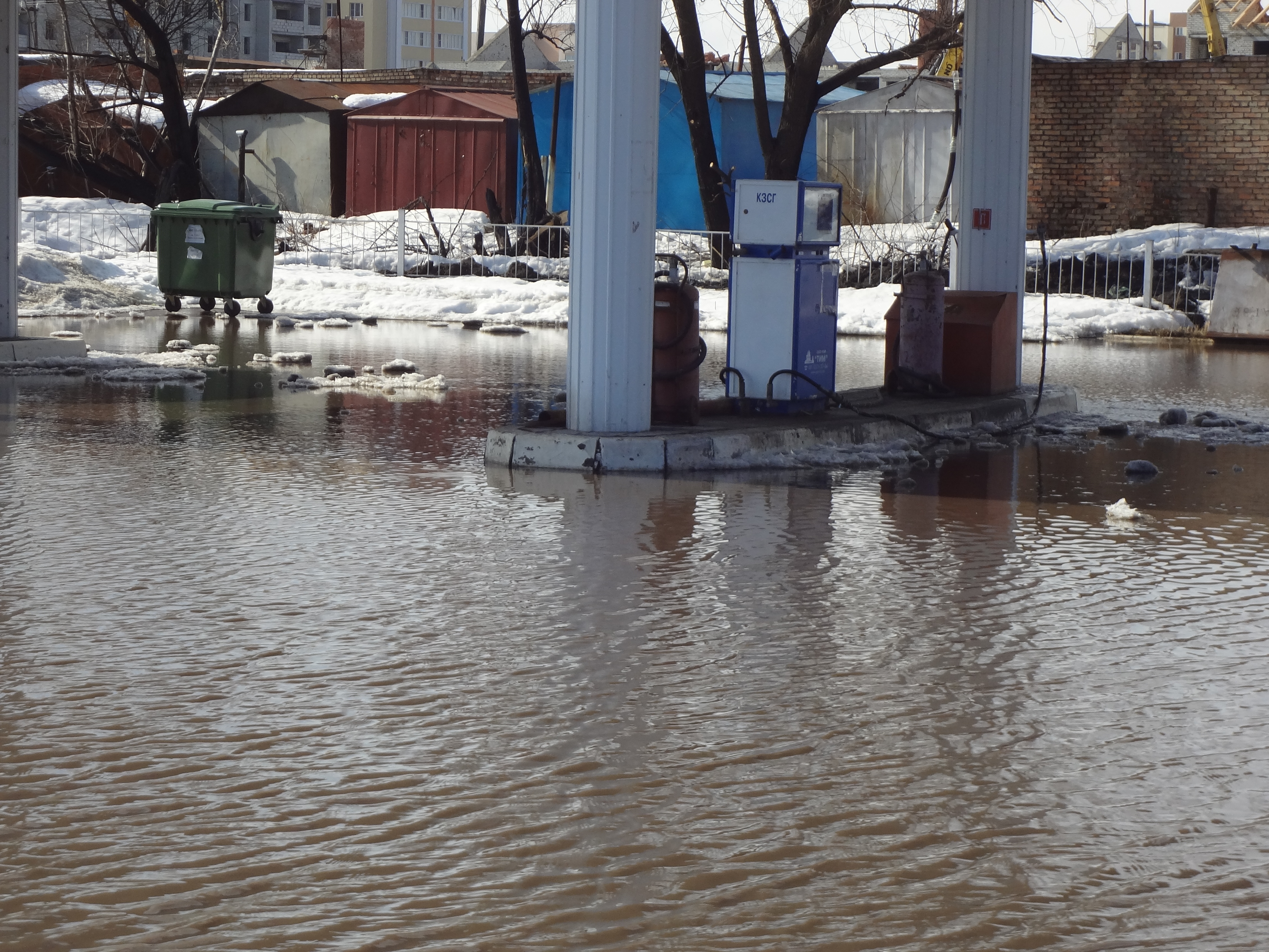 Вчера пензячка Елена Соловьева стала свидетельницей того, как из-за оттепели и тающего снега автозаправка утонула в воде.