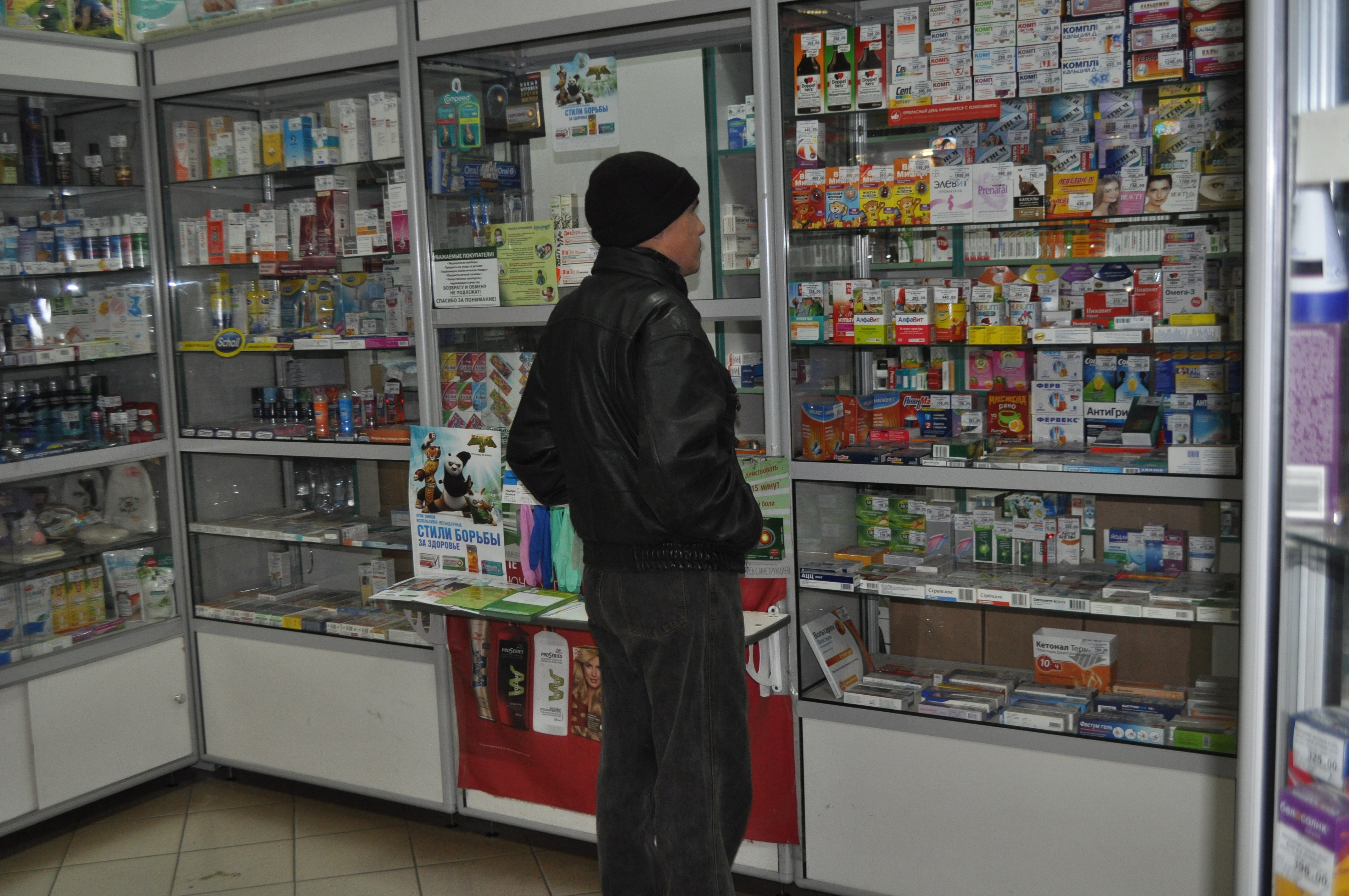 Корреспондент направился в аптеку, в которой уже стоял неопрятный покупатель, засовывая себе в карман две бутылочки «Медового тоника».