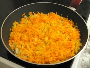 Лук и морковь нарежьте соломкой и обжарьте на сливочном масле до золотистого цвета.