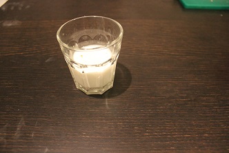 Пока первая часть охлаждается, займемся второй составляющей.50 грамм сливок выливаем в стакан. Разрезаем хурму, убираем кожуру и также добавляем в стакан. Как и в первой части, добавляем 3 грамма желатина. Нагреваем до комнатной температуры и добавляем в бокал, который находился в холодильнике. Желательно, чтобы к этому моменту прошло 10 минут.