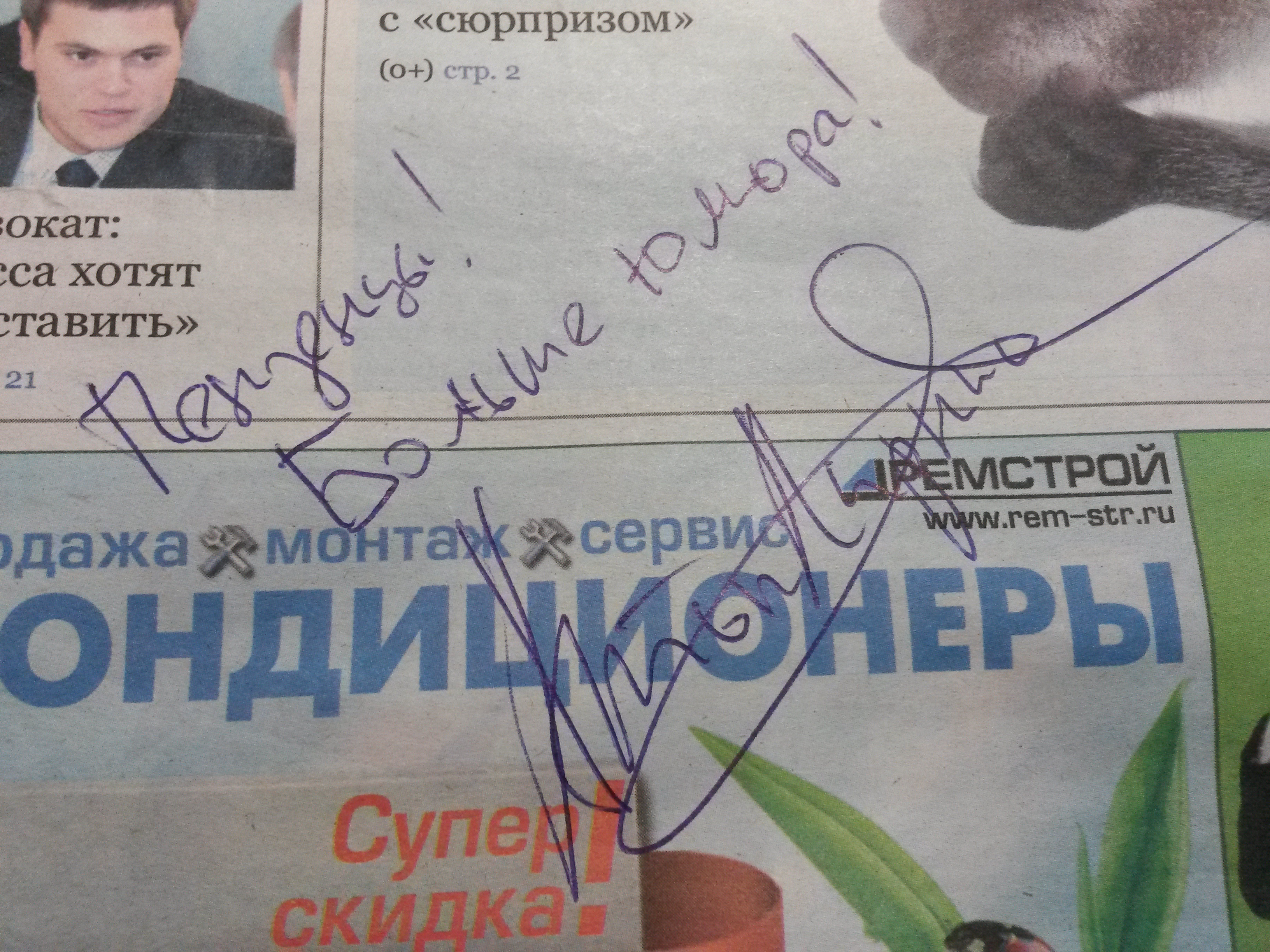 После ответов на вопросы читателей Лирник лично подписал пензенцам свою книгу. А всем читателям газеты "Pro Город" и сайта vpenze.ru юморист оставил персональное пожелание.