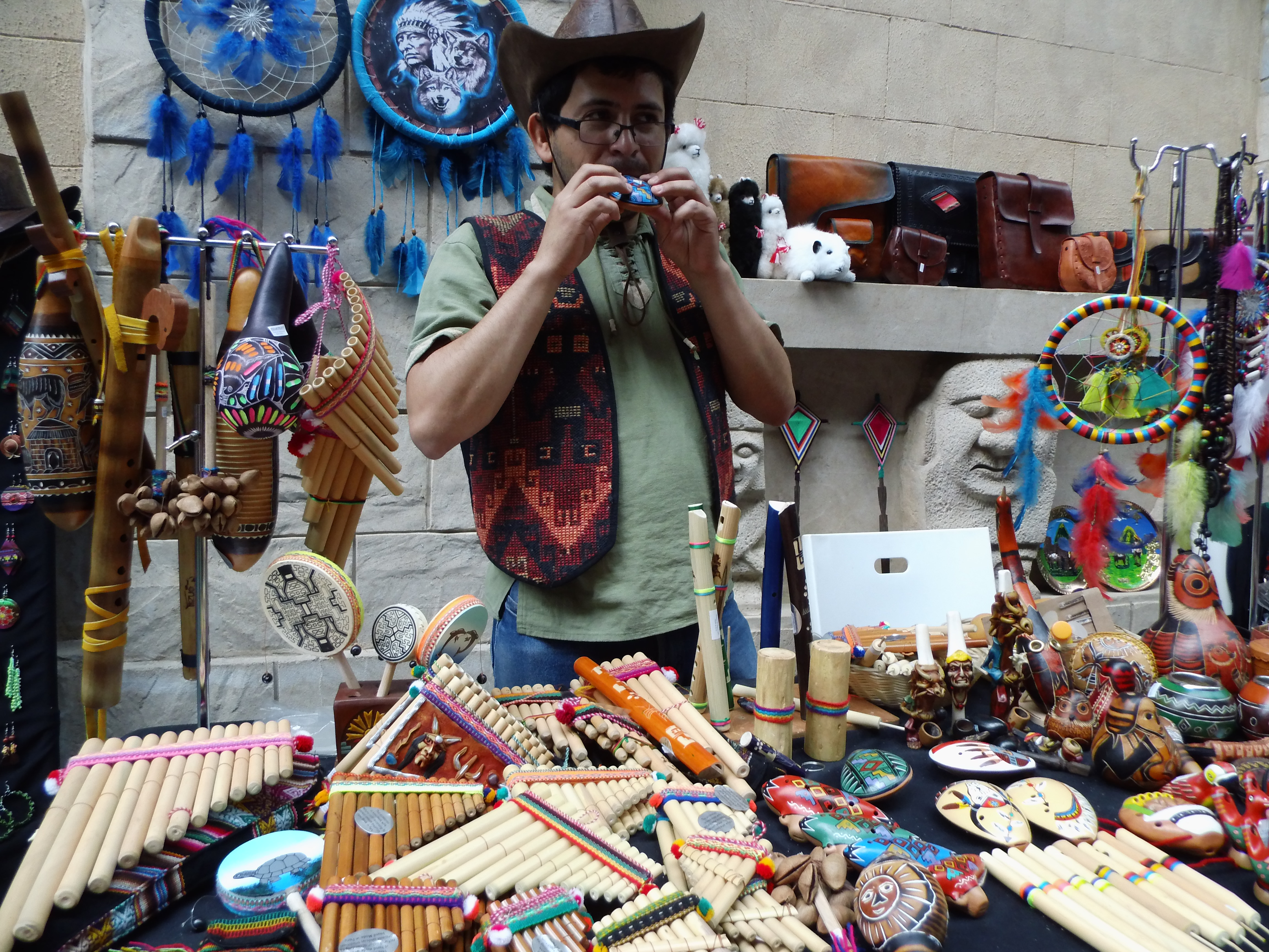 Мы обошли павильоны за несколько часов. На следующий день мы сделали тоже самое, но более тщательно. Ведь внутри находится так много сувенирных лавочек. Цены на изделия ручной работы такие же как в Пензе, но представлены все страны мира! Особенно нас привлёк музыкант из Перу, который продавал дудочки своей родной страны. Мы купили сопилку в виде жабы, которая издаёт приятный свист..jpg)