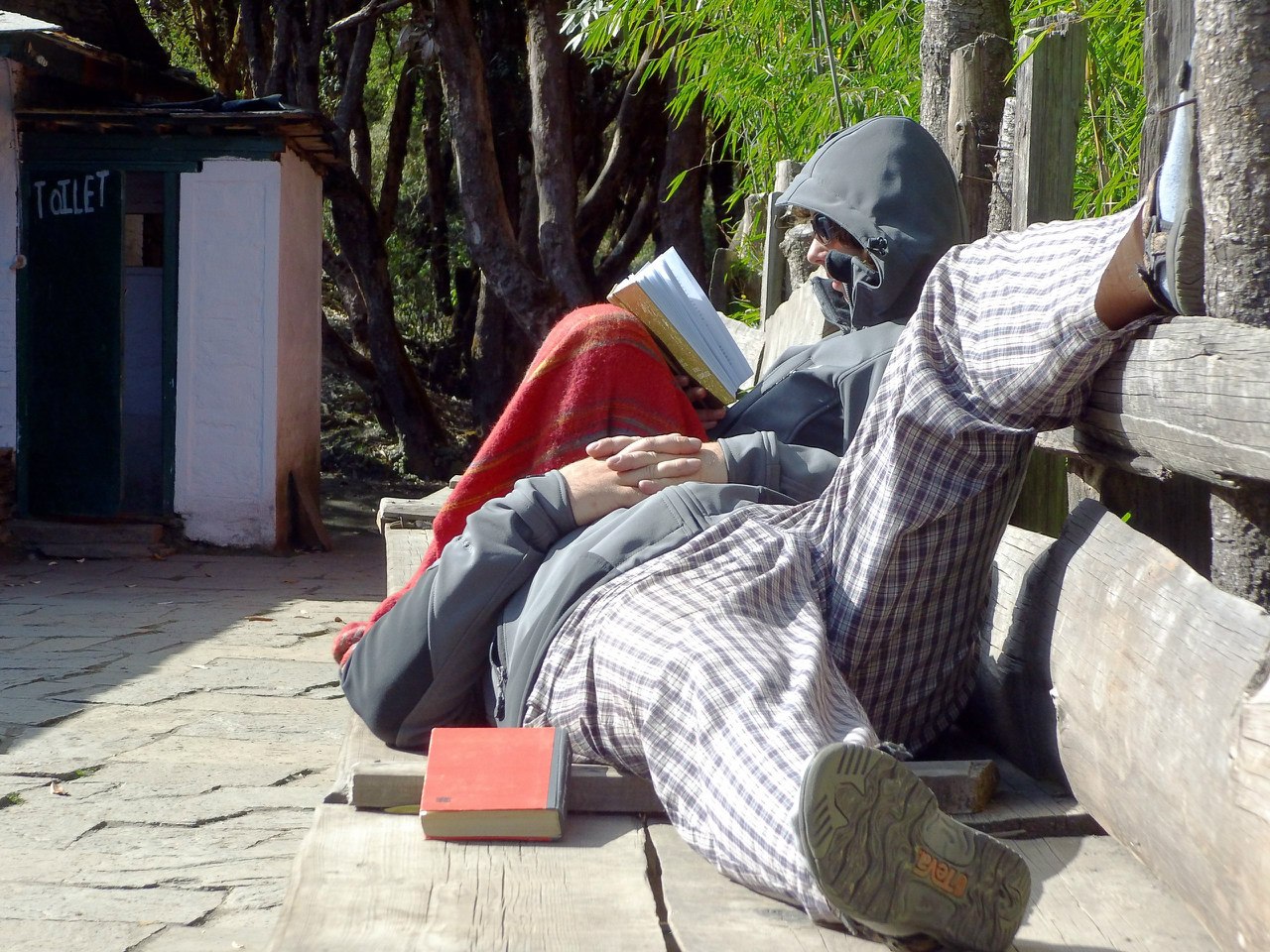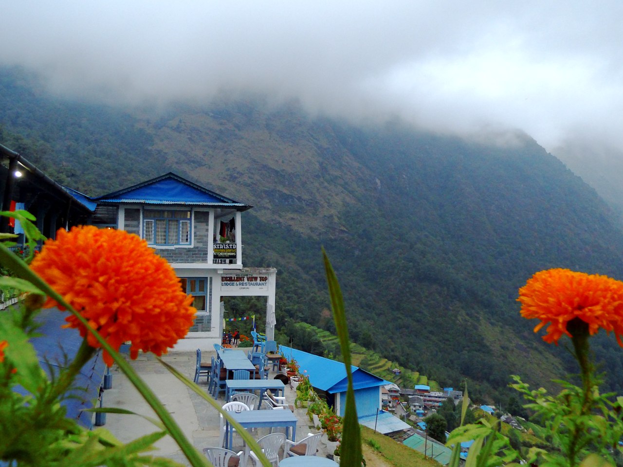 Днём мы останавливались пообедать в какой-нибудь гостинице. После перехода очень хочется есть. Еда в Непале дешевле, чем в России. Но в треке всё в два раза дороже: в горах транспорта нет. Иногда мы подолгу сидели на веранде и наблюдали, как в ущелье спускаются облака.