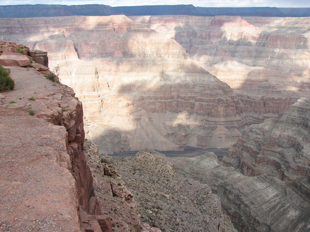 Когда наконец мы добрались до Гранд каньона, нашему восторгу не было предела. Нас ожидала бездонная пропасть, на краю которой очень много людей. Так как мы были здесь впервые, нас охватило необычное чувство - чувство беззащитности и незащищенности.