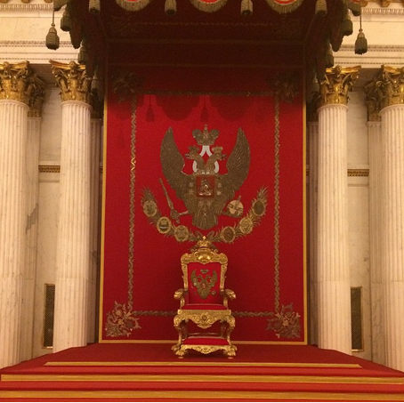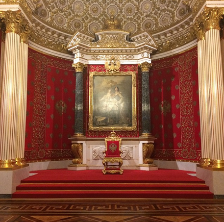 После остановки у Большого трона, Воля решил сделать остановку у трона, посвященного памяти Петра I. Взор пензенца упал на Петровский зал Зимнего дворца, спроектированный в 1833 году Монферраном.