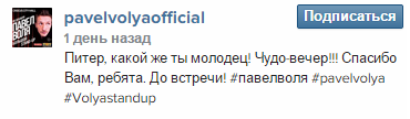 Павел Воля выступил с большим Stand-Up концертом в Санкт-Петербурге 25 ноября 2014 года.