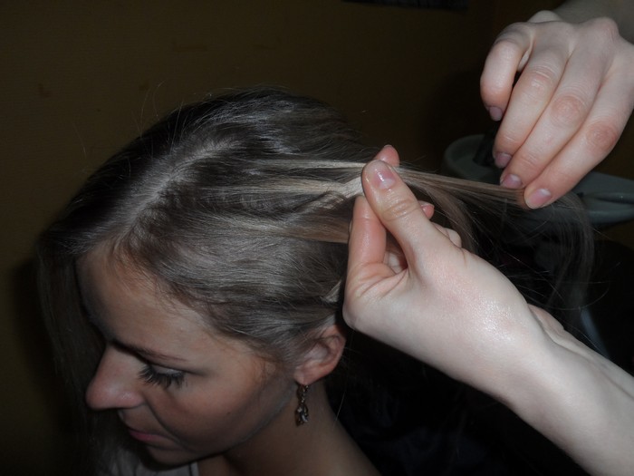 Для начала расчешем волосы и заведем верхнюю левую прядь немного в сторону.