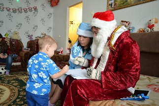 На пороге нас встречал маленький мальчик Данила. По взгляду можно было заметить, как он ждал нас. Оказавшись в квартире, мы со Снегурочкой решили сразу приступить к первому конкурсу. Однако все получилось не так, как мы планировали - ребенок заплакал. Мама пыталась успокоить мальчика, но все попытки заканчивались фиаско. Не помог и подарок, заготовленный для ребенка на конец поздравления.