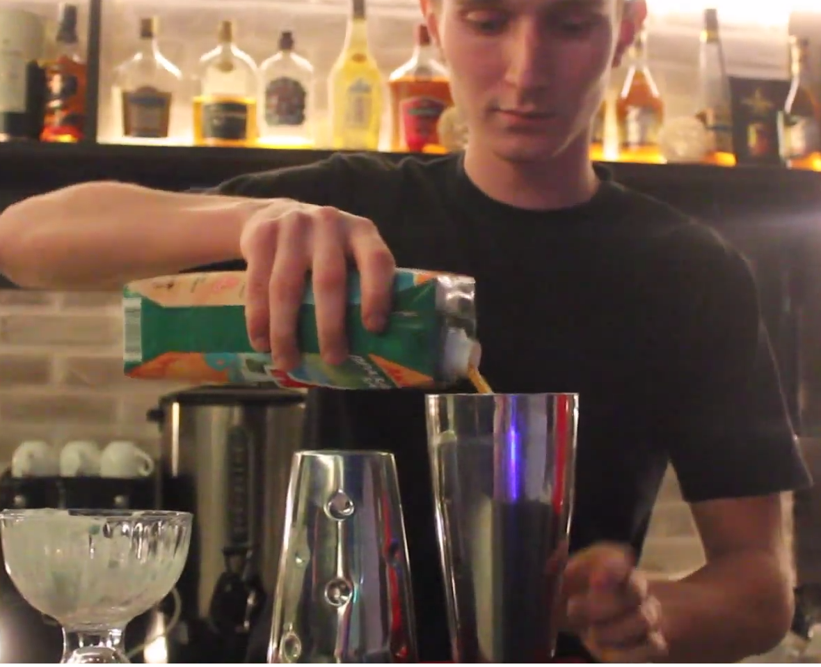 Бармен арт-кафе "Казачок" приготовил легкий и охлаждающий коктейль "Мимоза".
