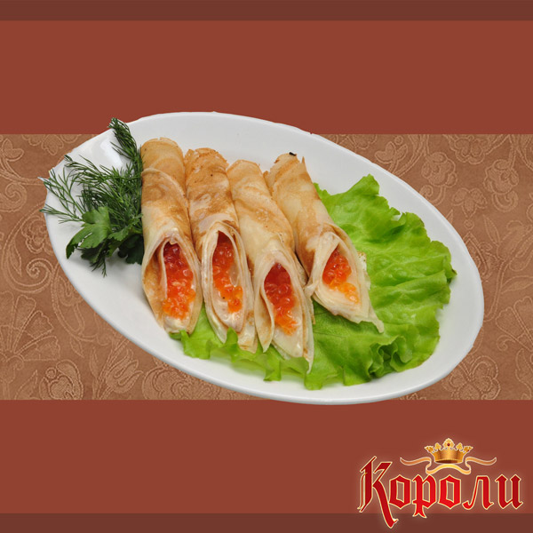Блинчики, фаршированные икрой - стоимость за порцию - 350 рублей