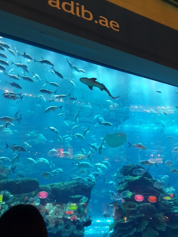 Как и было сказано ранее, ТРЦ "Дубай Молл" самый большой торговый центр в мире. На территории этого комплекса расположен один из самых больших аквариумов мира объемом 10 миллионов литров. Под аквариумом проложен тоннель для посетителей, откуда можно наблюдать за 33 000 различных морских обитателей океана, в число которых входят тигровые акулы и скаты.