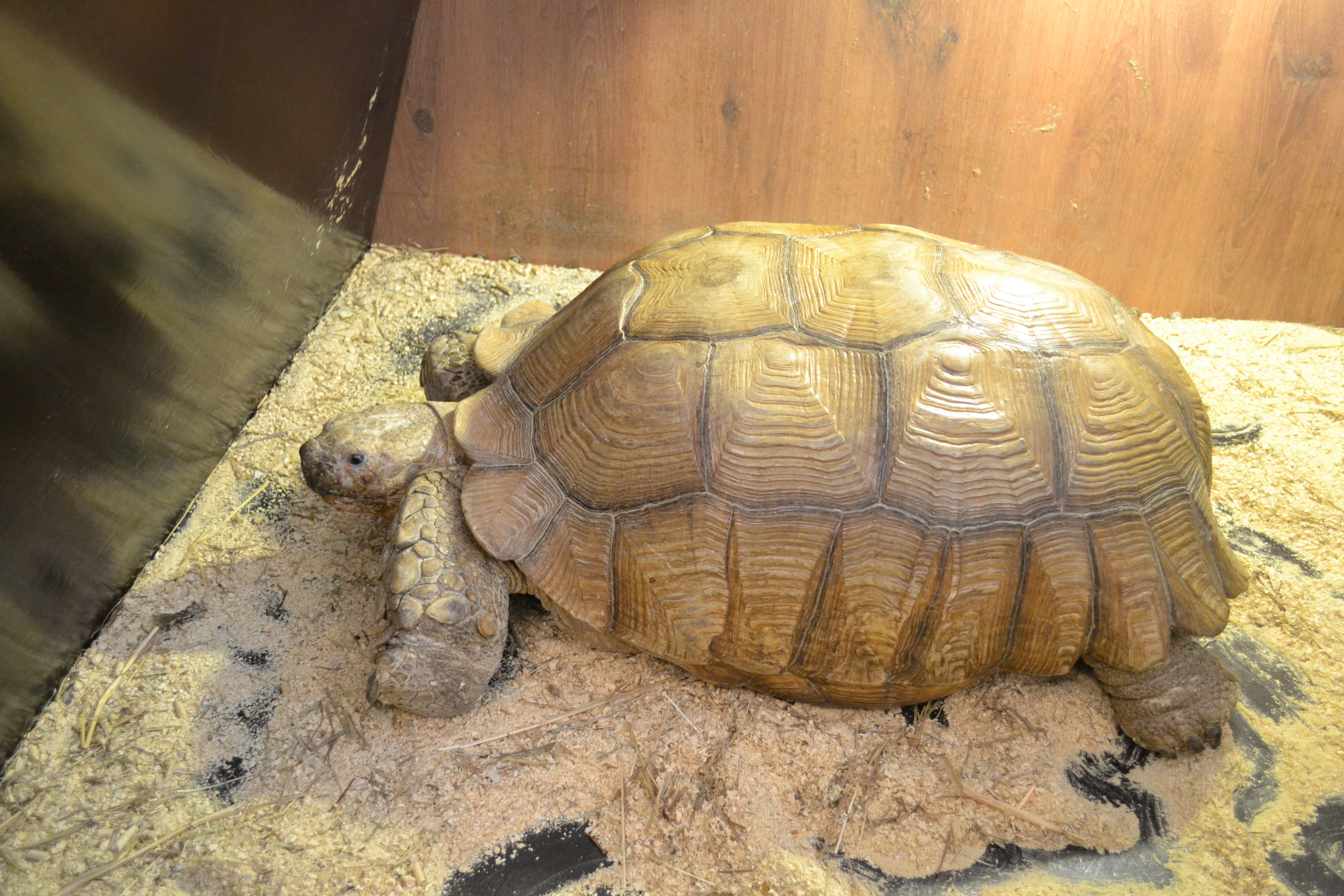 Но, разумеется, запомнились мне не только жабы. Множество других животных произвели на меня впечатление. Например, огромная черепаха, которой уже 30 лет. Интересный факт: черепаха по имени Малыш должна постоянно двигаться. Но небольшого вольера ей для движения мало. Поэтому она постоянно пытается выбить стену, чтобы расширить себе пространство.