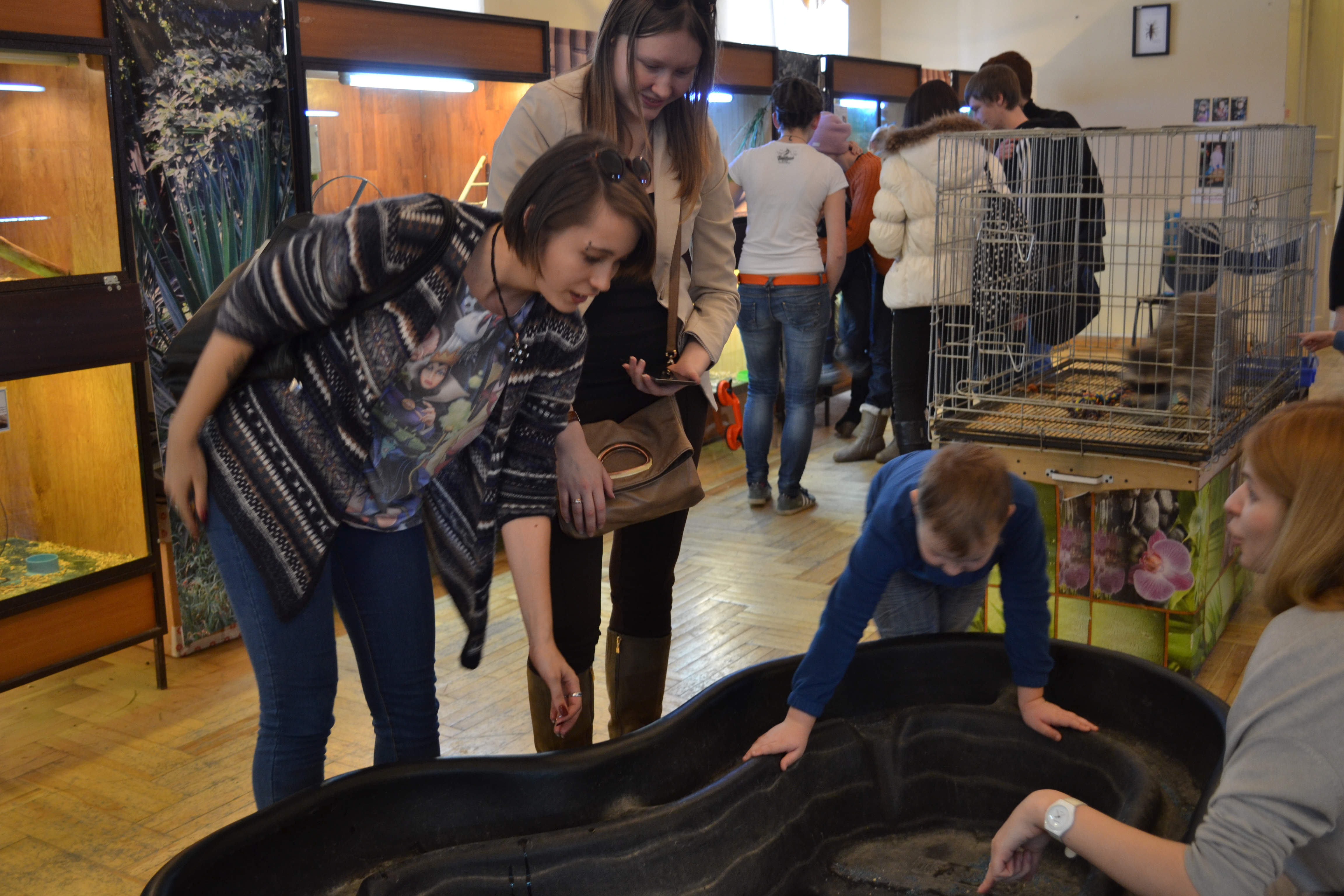 Во-первых, мы с коллегами не ожидали увидеть столько народу на данной выставке. Взрослые с детьми, просто взрослые и просто дети ходили от террариума к террариуму, от клетки к клетке, мило умилялись и гладили кроликов, черепах и морских свинок. Организаторам зоопарка пришлось создавать экскурсионные группы, чтобы достать каждое животное и рассказать о нем посетителям подробнее.