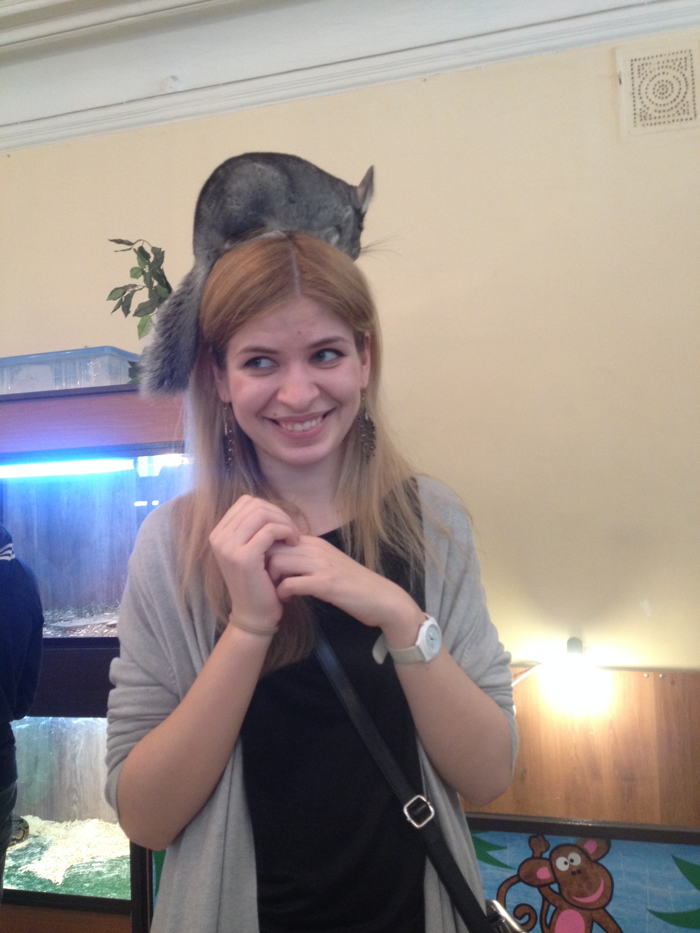 А моя коллега, Дарья Павленко, очень обрадовалась тому, что можно посадить на голову шиншилу.