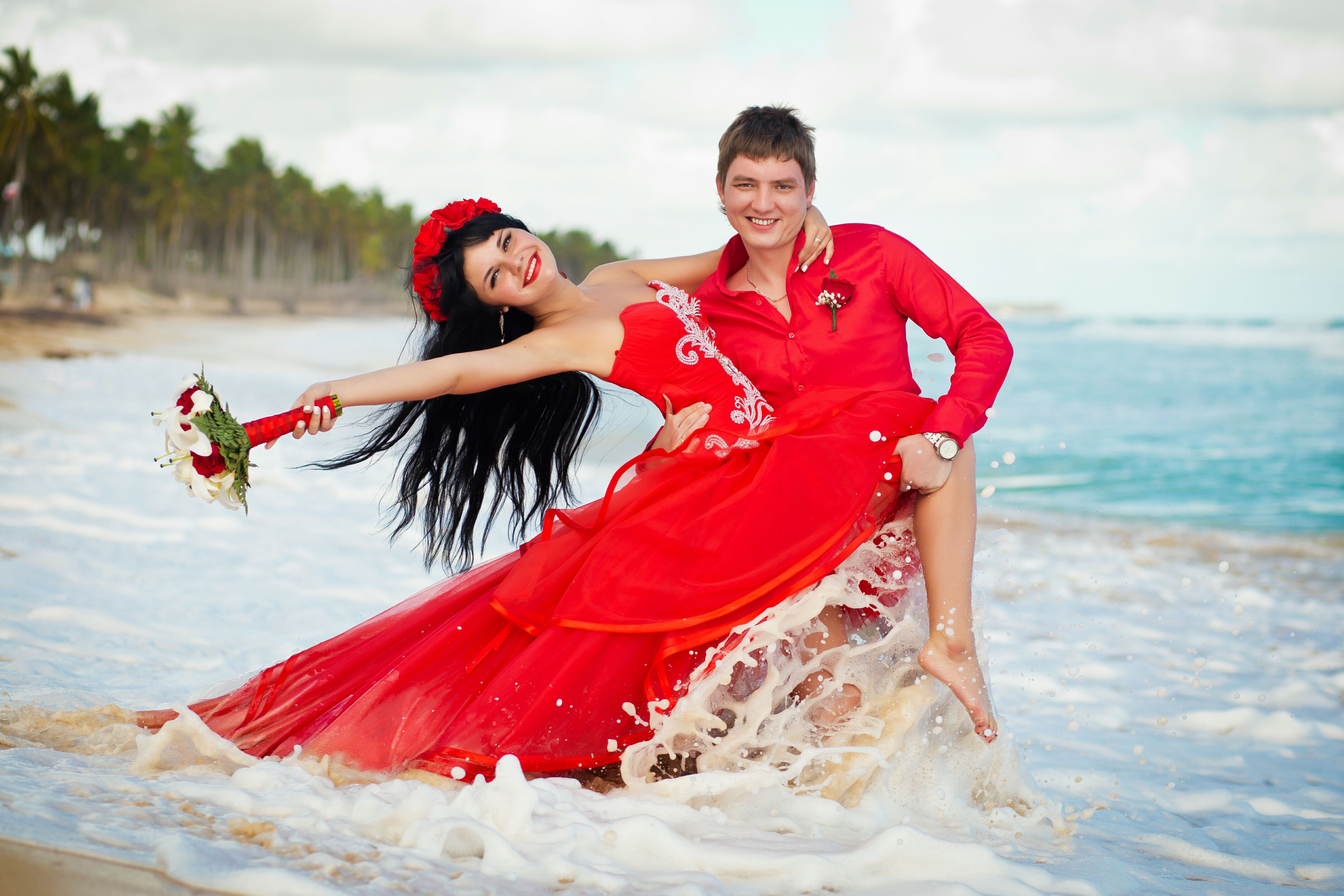 «Мы очень веселая и неординарная пара, любим пробовать все новое и путешествовать. Данный снимок сделан во время свадебной церемонии в Доминиканской республике. Белоснежный пляж Макао и теплые воды Атлантического океана - все, что нужно для самого главного праздника в нашей жизни!»