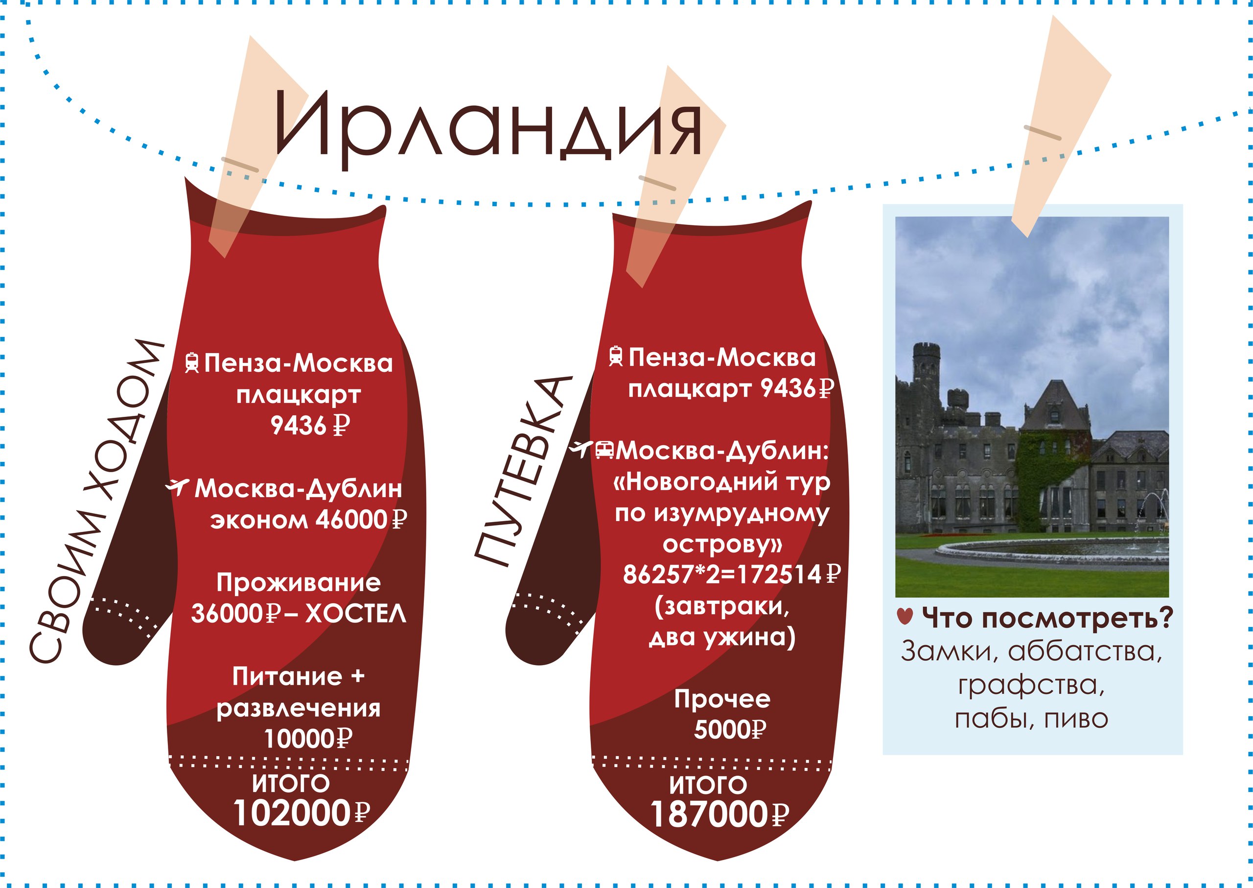 Если в прошлый раз выходило, что своим ходом выгоднее ехать только в Великий Устюг, то сейчас преимущество заметней. Оно касается Ирландии, Латвии и Вьетнама. Правда, все риски с организацией мероприятий будут полностью лежать на вас.