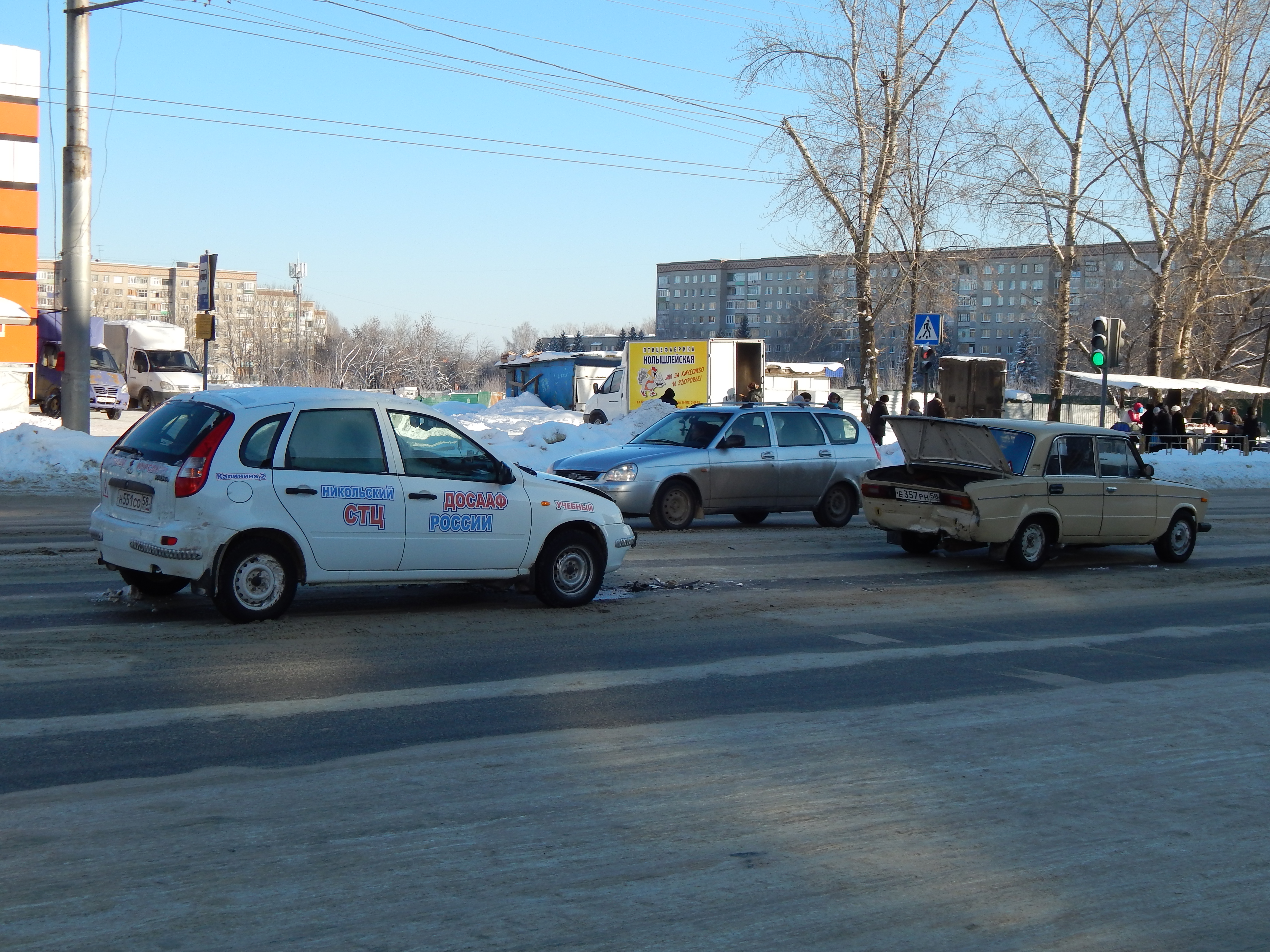 А Александр Новиков прислал фото под названием "Урок практической езды" (ДТП на проспекте Победы, 28.01.2014. За рулем был инструктор).