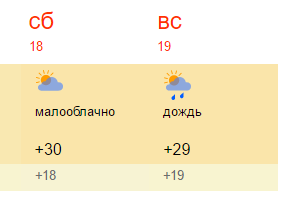 На Meteoinfo вышел многообещающий прогноз – днем до 31, но все же с вероятностью осадкой днем и в субботу, и в воскресение.