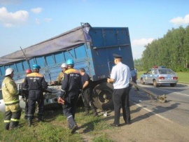 На трассе в Пензенской области оторвавшийся от КамАЗа прицеп врезался "десятку"