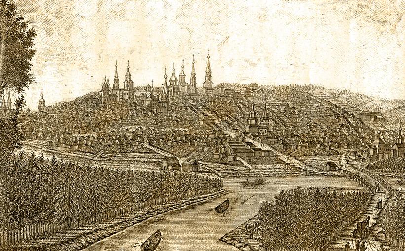 Видъ города Пензы на Суру Р. къ Cѣверо-востоку. Гравюра 60-х годов XVIII века. Художник М. И. Махаев.