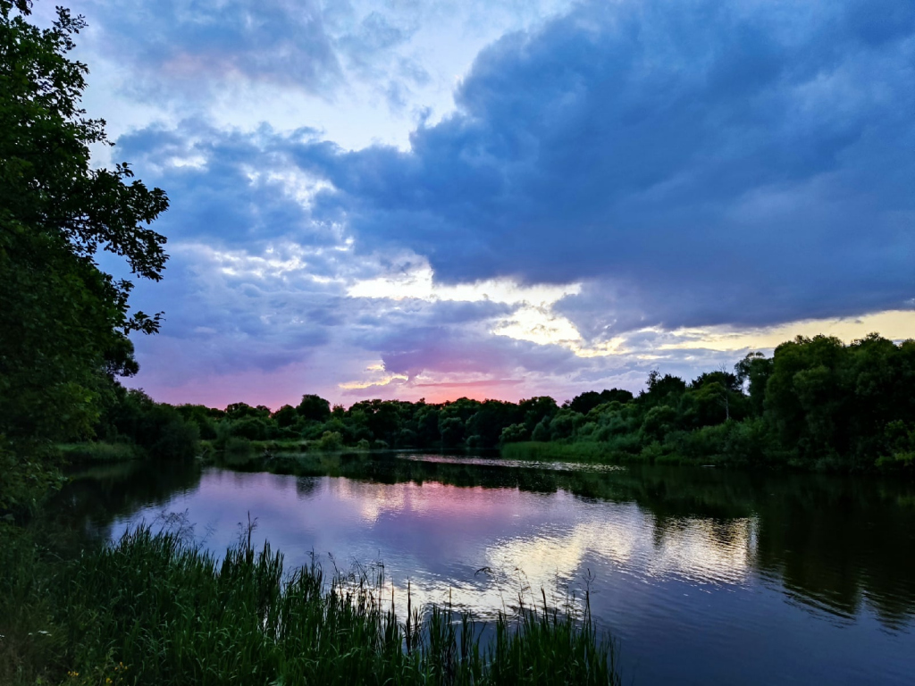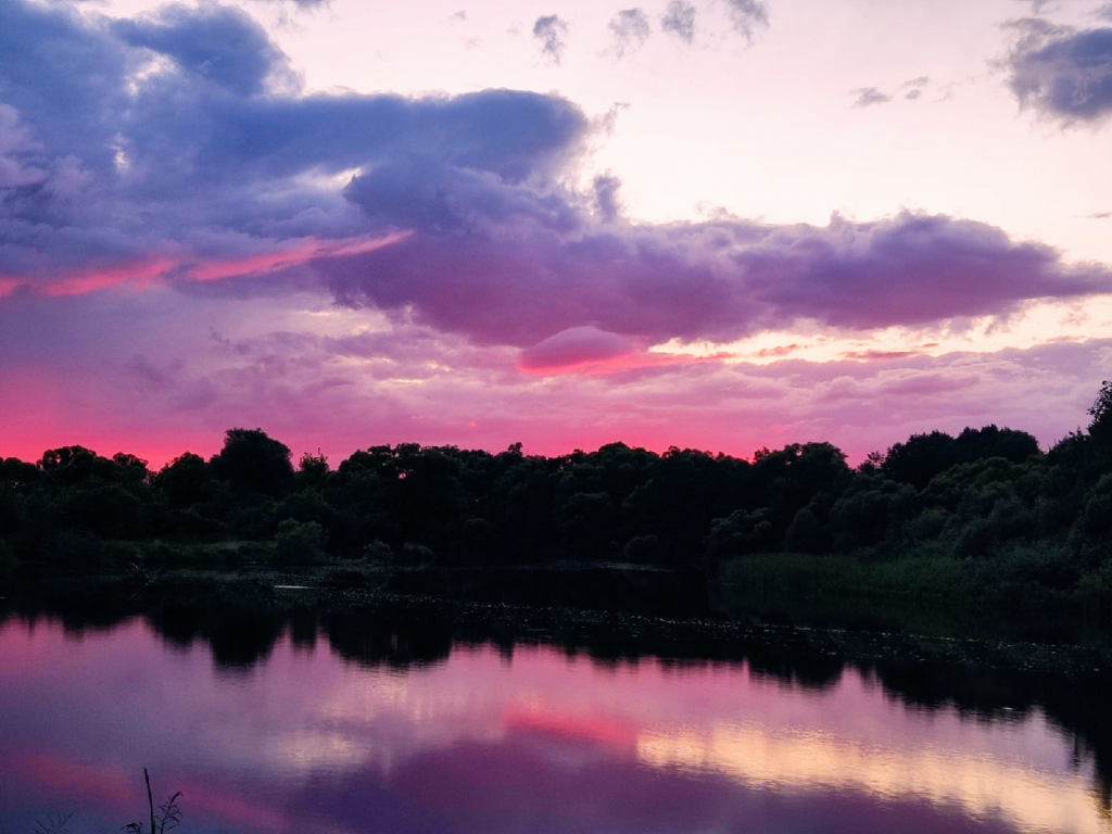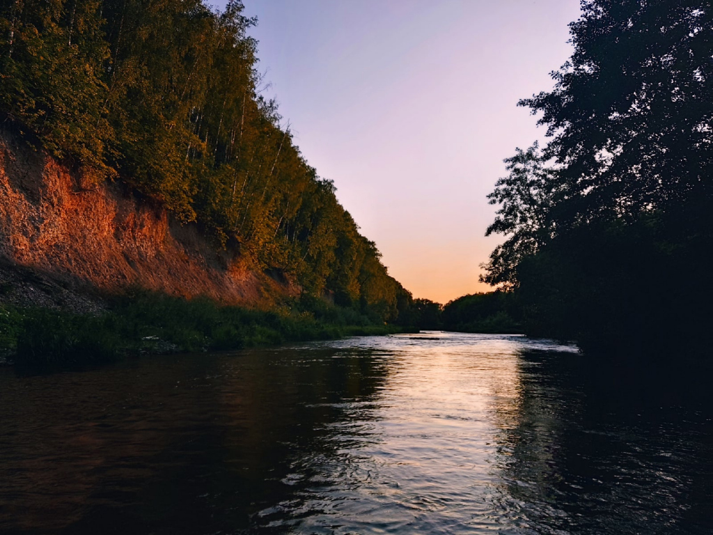 Под вечер причалили к берегам уже около Сурского водохранилища. До него оставалось плыть около часа. Место выбрали не менее удачное, чем в первый раз. С той поляны открывался потрясающий вид на закат. В тот день, 24 июля, он был розовый. А вот рассвет снова все проспали.