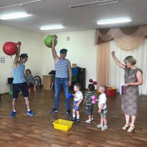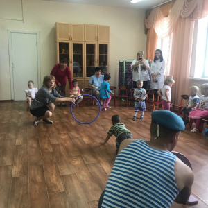 Бывшие военнослужащие и малыши соревновались в спортивных играх: «Переправа», «Склад боеприпасов», «Метание гранат», «Полоса препятствий». Дети с азартом выполнили зарядку и силовые упражнения вместе с десантниками. Ребята получили заряд бодрости и массу положительных эмоций.