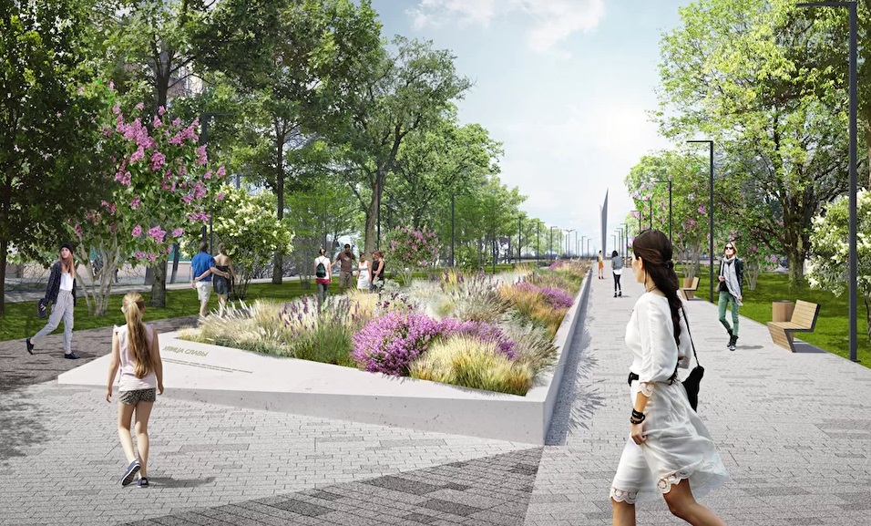 В зоне отдыха появятся новые деревья и цветники с многолетними растениями и травами. Детскую и спортивную зоны обведут живой изгородью, у воды высадят болотные растения.