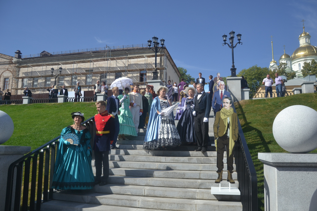 Гостей встречали наряженные в костюмы 19 столетия артисты, которые сыграли роль М. Ю. Лермонтова, И. А. Куприна, В. Г. Белинского, М. Е. Салтыкова-Щедрина и других русских классиков золотого века.