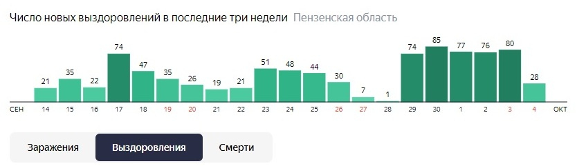 Количество выздоровевших за сегодня – 28 человек, что на 65 процентов меньше по отношению к предыдущему дню. Сколько сегодня пандемия унесла жизней в регионе, пока неизвестно.