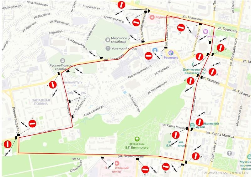 - по улице Карла Маркса от улицы Советская до входа (въезда) в Центральный парк культуры и отдыха имени В.Г. Белинского;