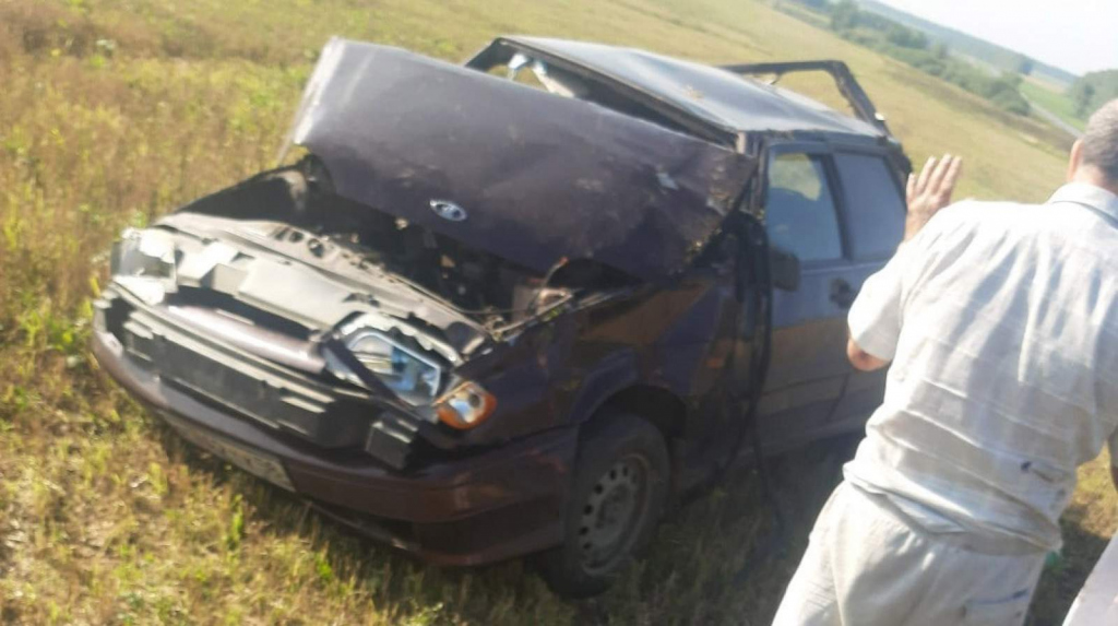 На размещенных снимках видно, что легковой автомобиль ВАЗ лежит в поле в нескольких десятках метров от дороги. Вероятно, что машина вылетела с проезжей части и несколько раз перевернулась.