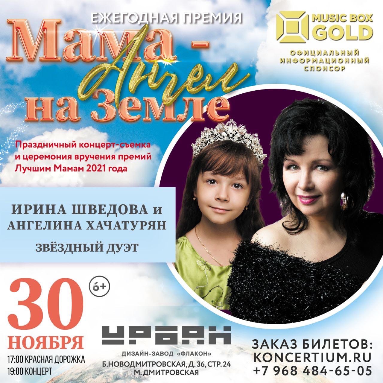 30 ноября Ангелина пройдёт по Красной дорожке с российской певицей, известной актрисой театра и кино - Ириной Шведовой - а затем выйдет с ней на сцену и звездным дуэтом они исполнят красивую песню. На мероприятии будет вручаться премия Лучшим мамам 2021 года «Мама – Ангел на Земле»