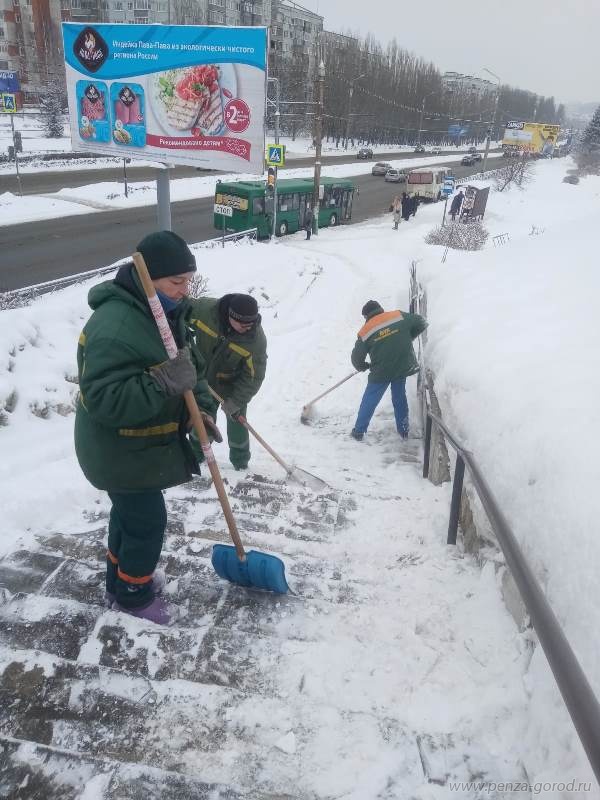 Более чем на 14 улицах ведется уборка пешеходных зон силами рабочих коммунальных служб. Чистят не только дорожки, но и лестничные пролеты.