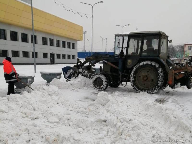 Погрузка и вывоз снега идет на Привокзальной площади станции Пенза-1, проспекте Победы, на улице Ленинградской, путепроводе на улице Толстого, - рассказали в администрации Пензы.
