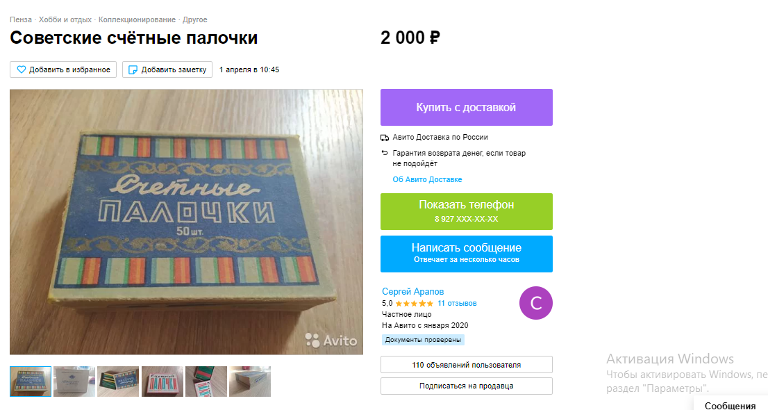 4 место — Советские счётные палочки за 2 тыс рублей. Автор утверждает, что они новые.