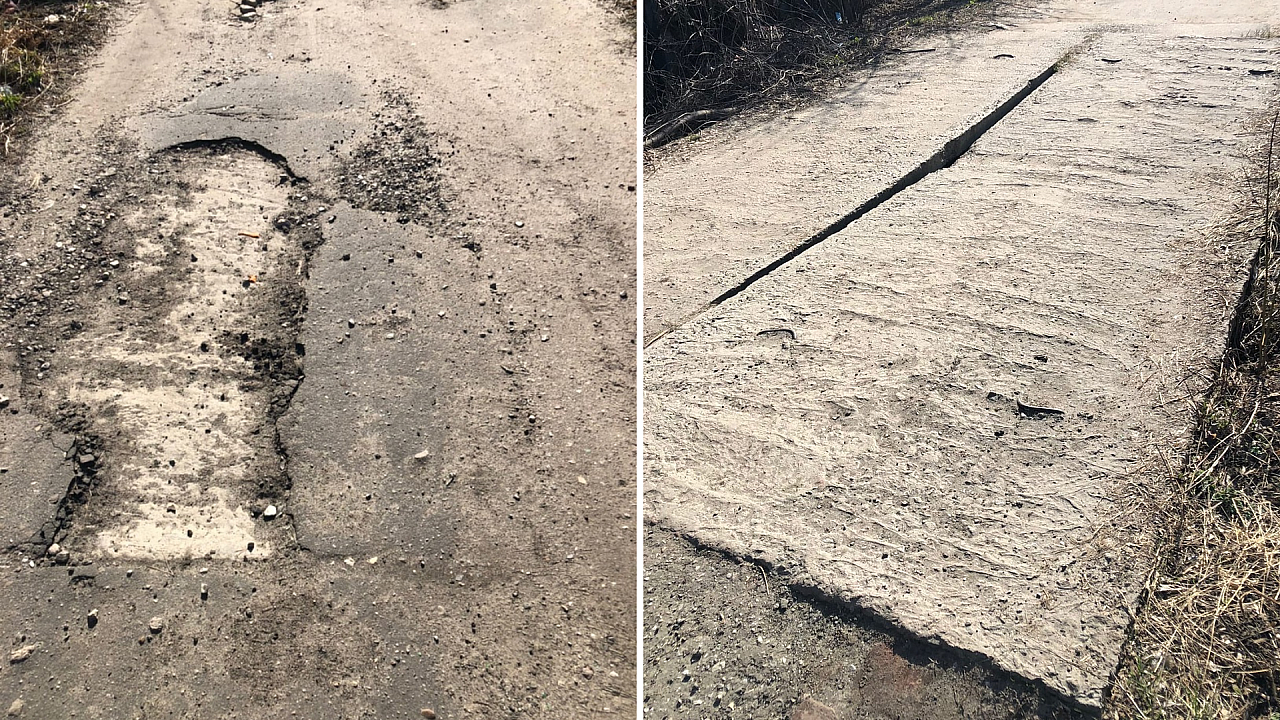 — Это пешеходная, основная, единственная дорога, по которой люди идут к остановке общественного транспорта, в магазин. Здесь я спешу отметить надломленная плита, которая несет опасность и можно ноги переломать. С 2020 года я говорю об этом. Прошу сделать ремонт этого участка.