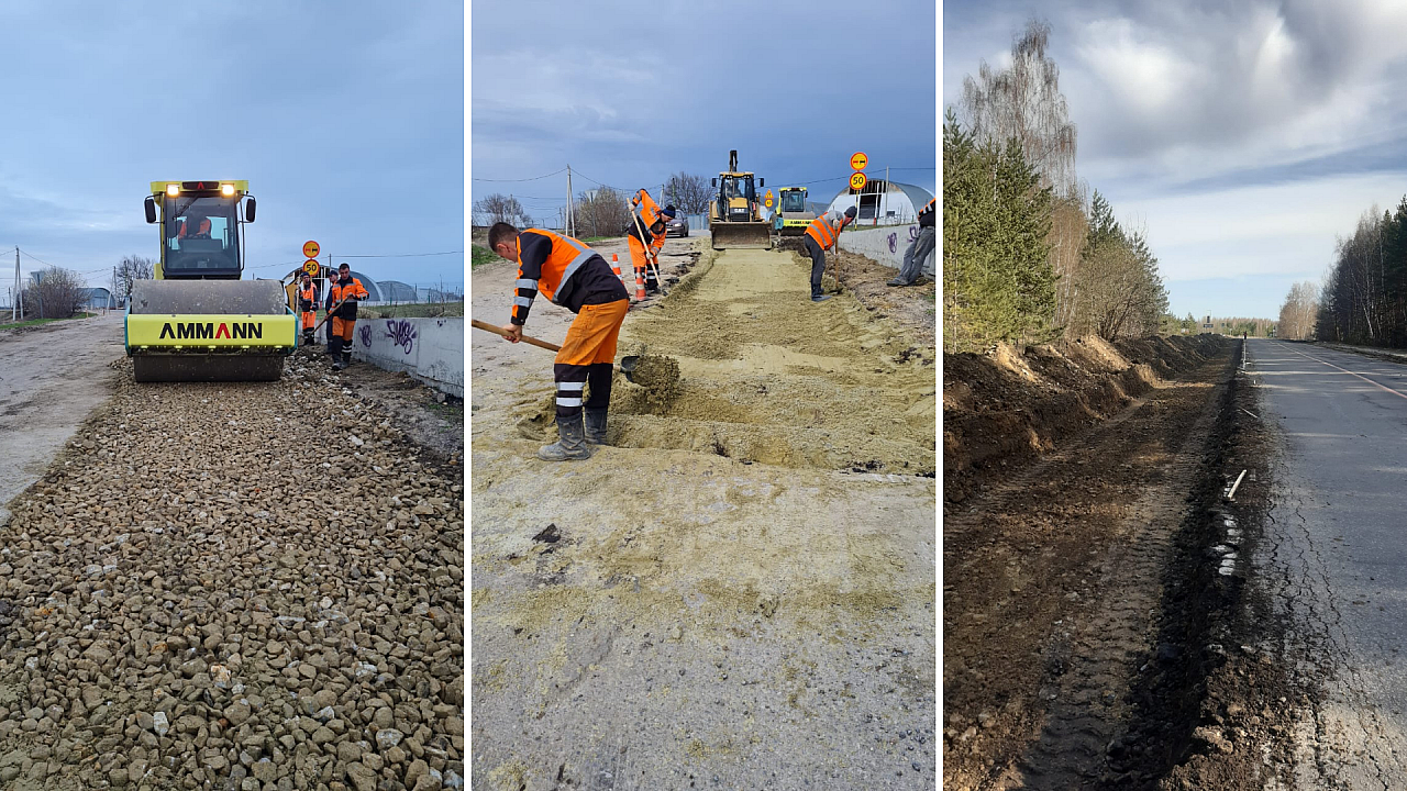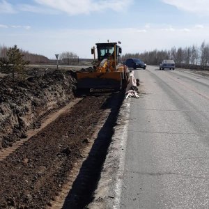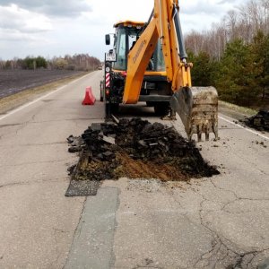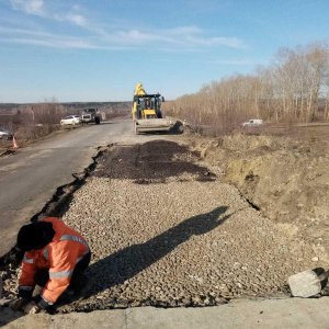 На второй дороге, которая проходит через село Алферьевка протяженностью в 3 км также подрядчик устраняет пучины.