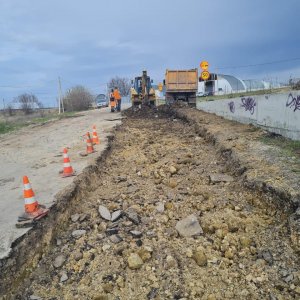 Сейчас выполняются работы по устройству основания автодороги.