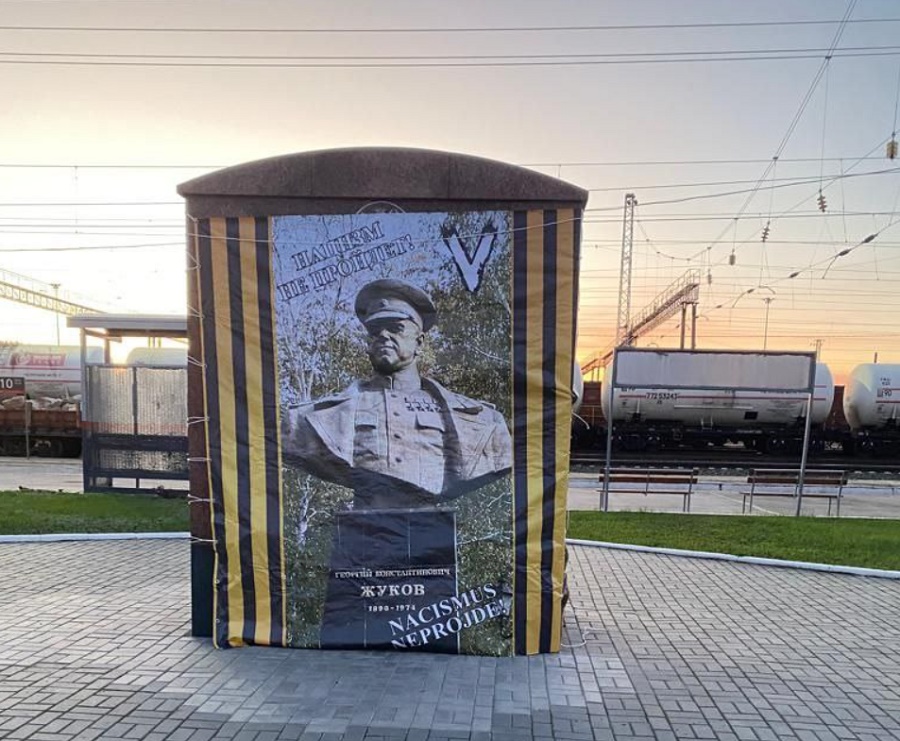 Пензенцы закрыли баннером памятник на станции «Пенза-III»