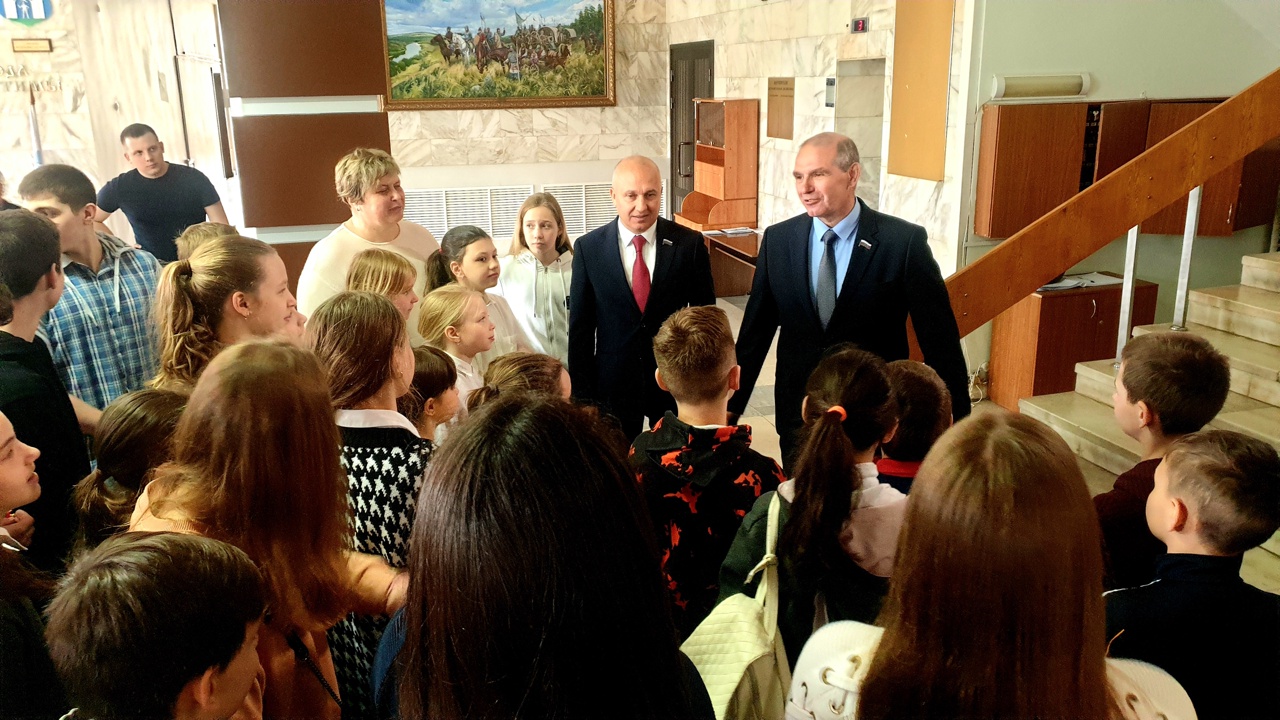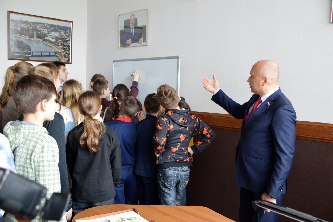 Юрий Зиновьев, взявший на себя роль экскурсовода, показал им, где заседают пензенские ветераны-общественники, региональную общественную приемную председателя партии "Единая Россия" Д.А. Медведева, где встречаются народные избранники со своими избирателями, а также показал кабинеты руководства представительного органа муниципалитета. Дети смогли посидеть в рабочем кресле Главы города и увидели, какие большие пачки документов приходится изучать народным избранникам, готовясь к заседаниям комиссий и сессий. В кабинете Юрия Зиновьева на флипчарте ребята оставили депутатам добрые пожелания, которые тот обещал показать всем коллегам по депутатскому корпусу.