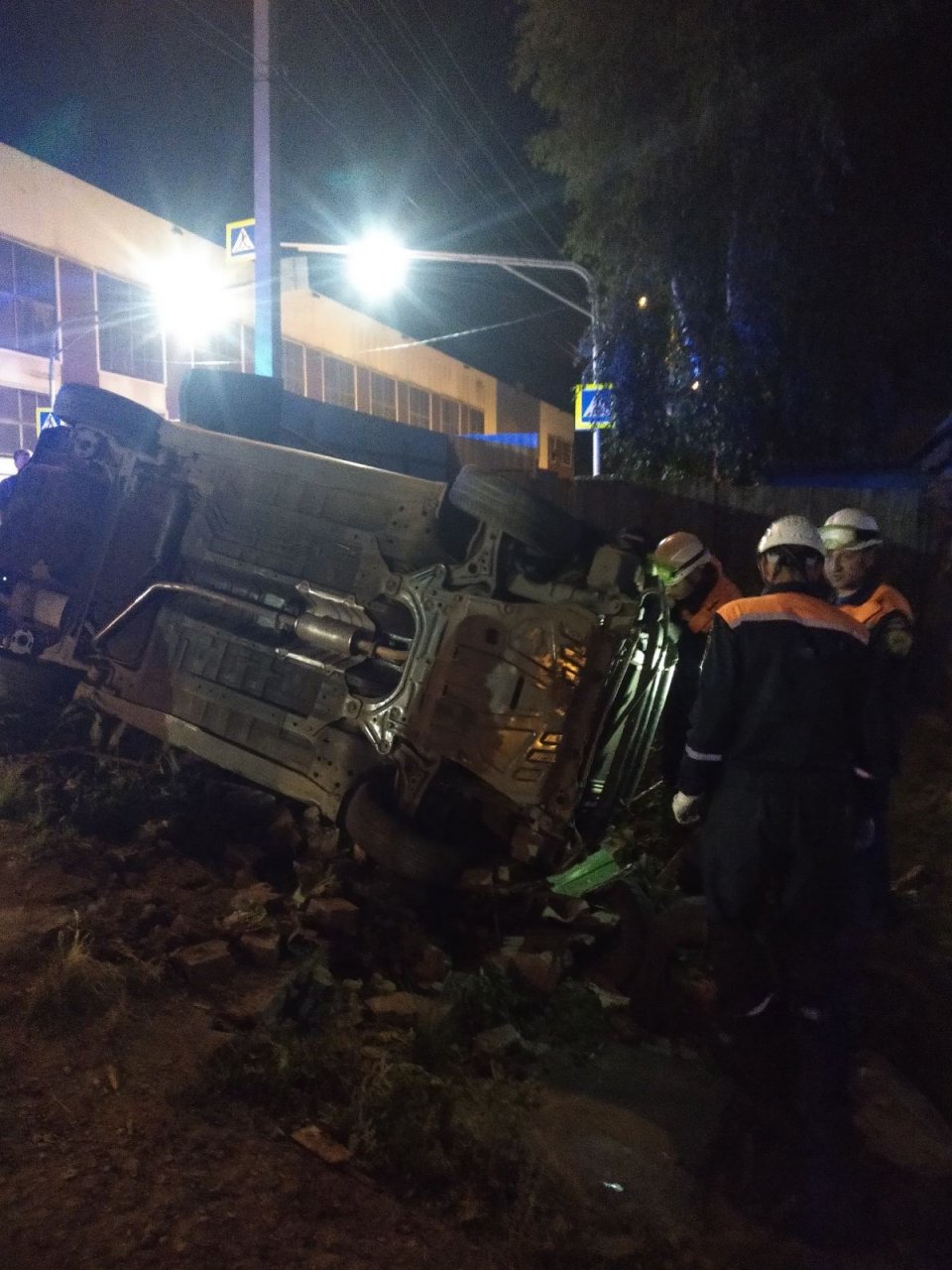 Легковушка наехала на ограждение и перевернулась. Авария произошла после полуночи.