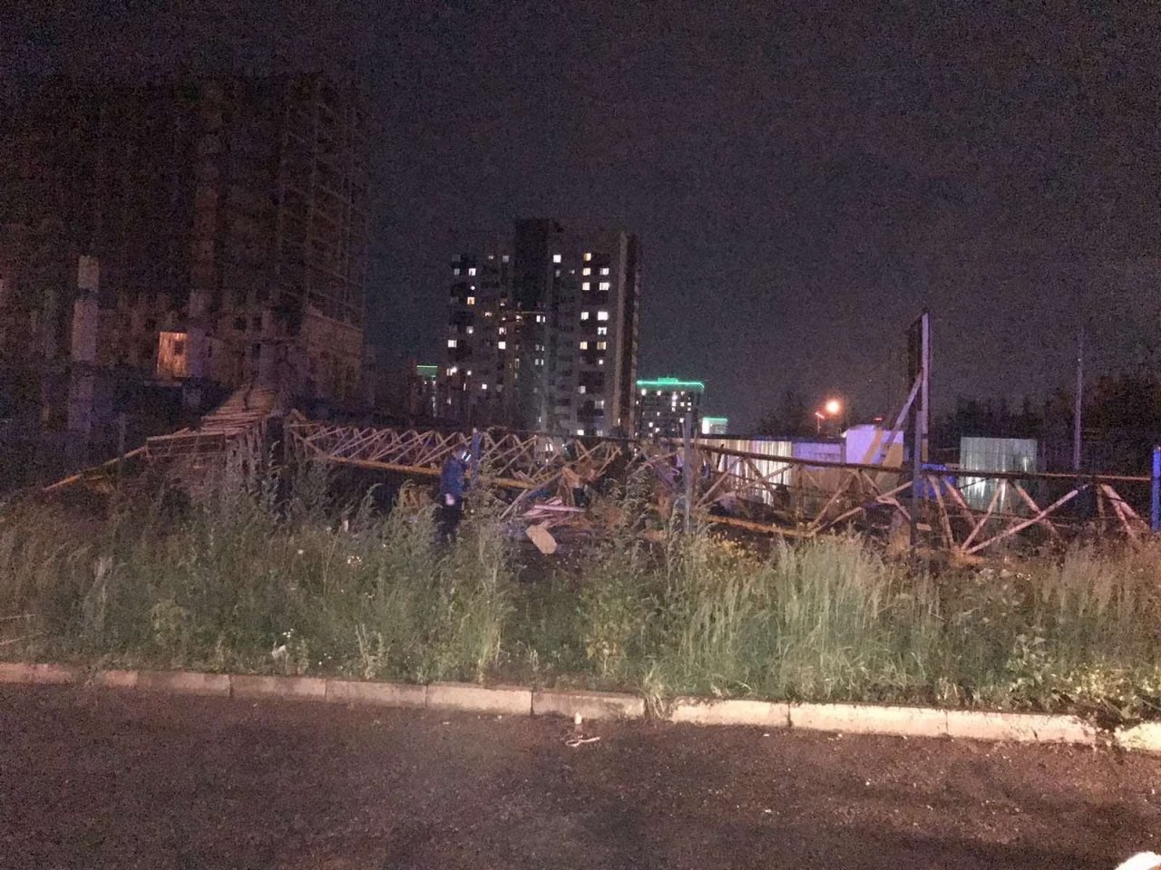 По предварительной информации во время ЧП в будке, на которую упал кран, находился охранник стройки. Он скончался на месте ЧП. Крановщик выпал из кабины крана, его госпитализировали в тяжелом состоянии.