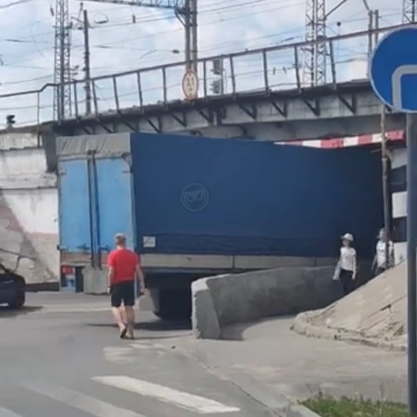 Вчера, 28 июня, снова под Бакунинским мостом застрял больше груз. Фото с места появилось в группе Сова авто г.Пенза.