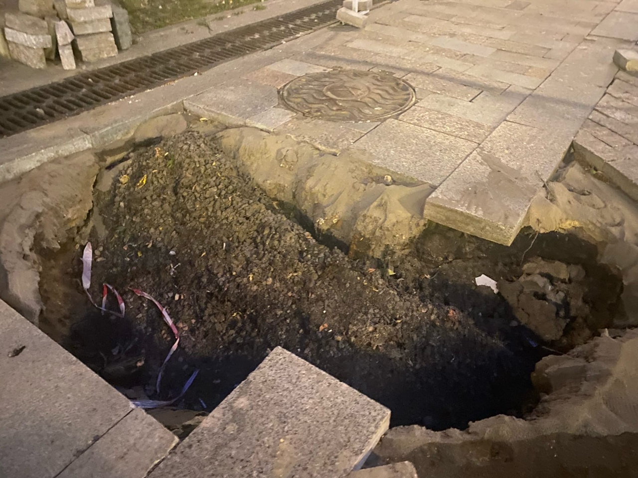 Пост с фото появился в группе с подписью: "На Московской очередной провал. Сточные воды размывают грунт". Причем, это не в первый раз происходит.