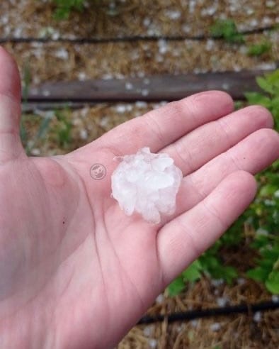 В группе соцсети Вконтакте поделились фото града, на которых видно, что он размером с грецкий орех и даже больше. В тамбовской области в городе Рассказово просто усыпал округу.