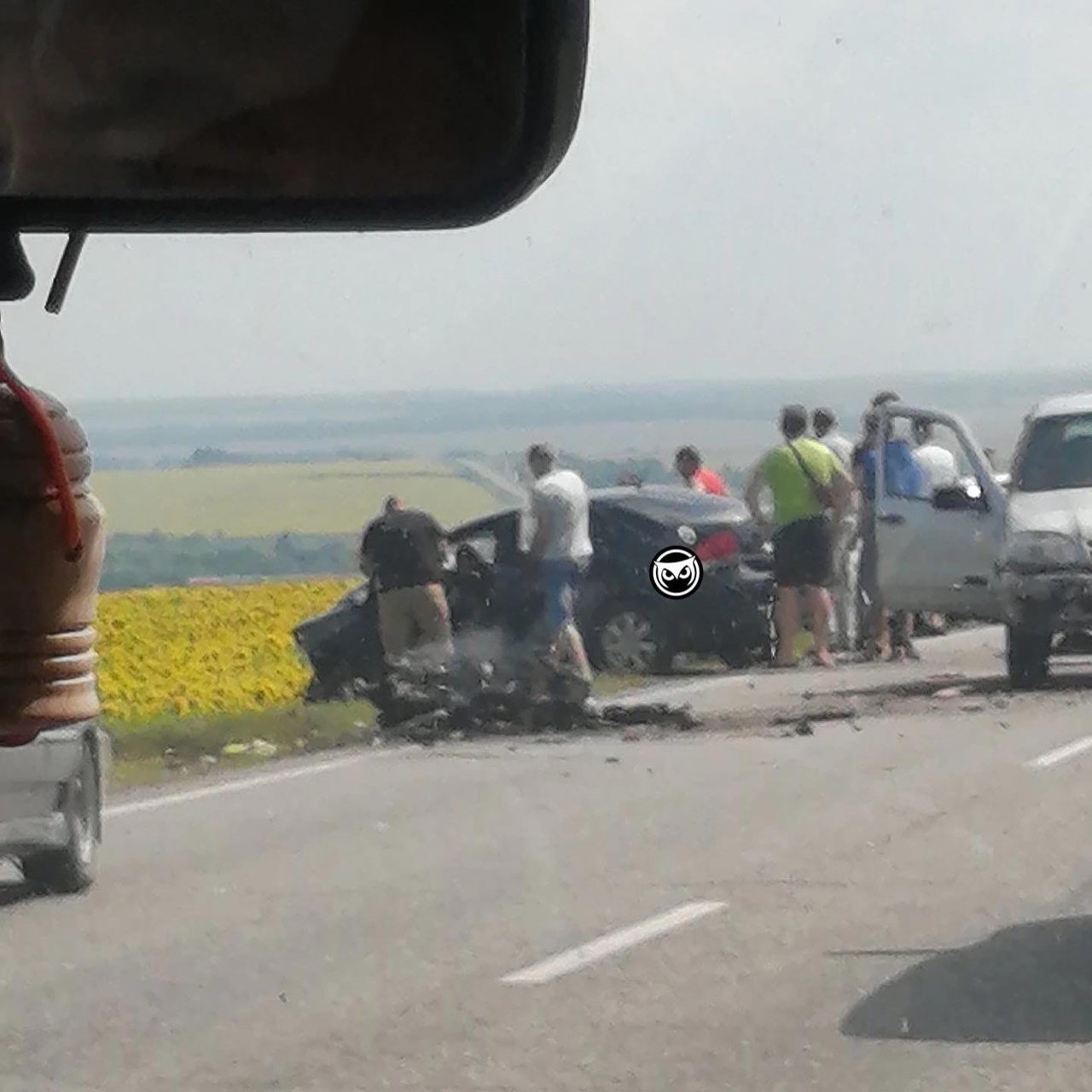 В группе Сова авто г.Пенза появились фото и видео с места аварии, ДТП произошло около села Захаркино примерно в 12.50.